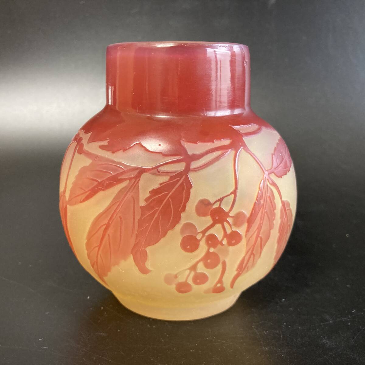 - 【銘品】エミール ガレ すぐり文花器 小壺 花瓶 多色多層被せガラス 酸化腐蝕彫 茶器 茶道具 アンティーク 本物保証