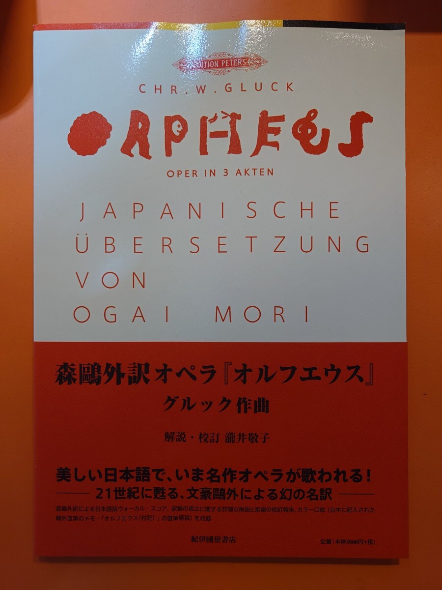 - 森鴎外訳オペラ『オルフエウス』全三幕 グルック作曲 紀伊國屋書店 日本語版ヴォーカル・スコア