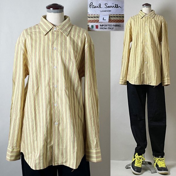 > ★【日本製 イタリア製ファブリック 国内正規品】Paul Smith LONDON ポールスミス ロンドン ストライプ柄 シャツ 長袖 L イエロー系