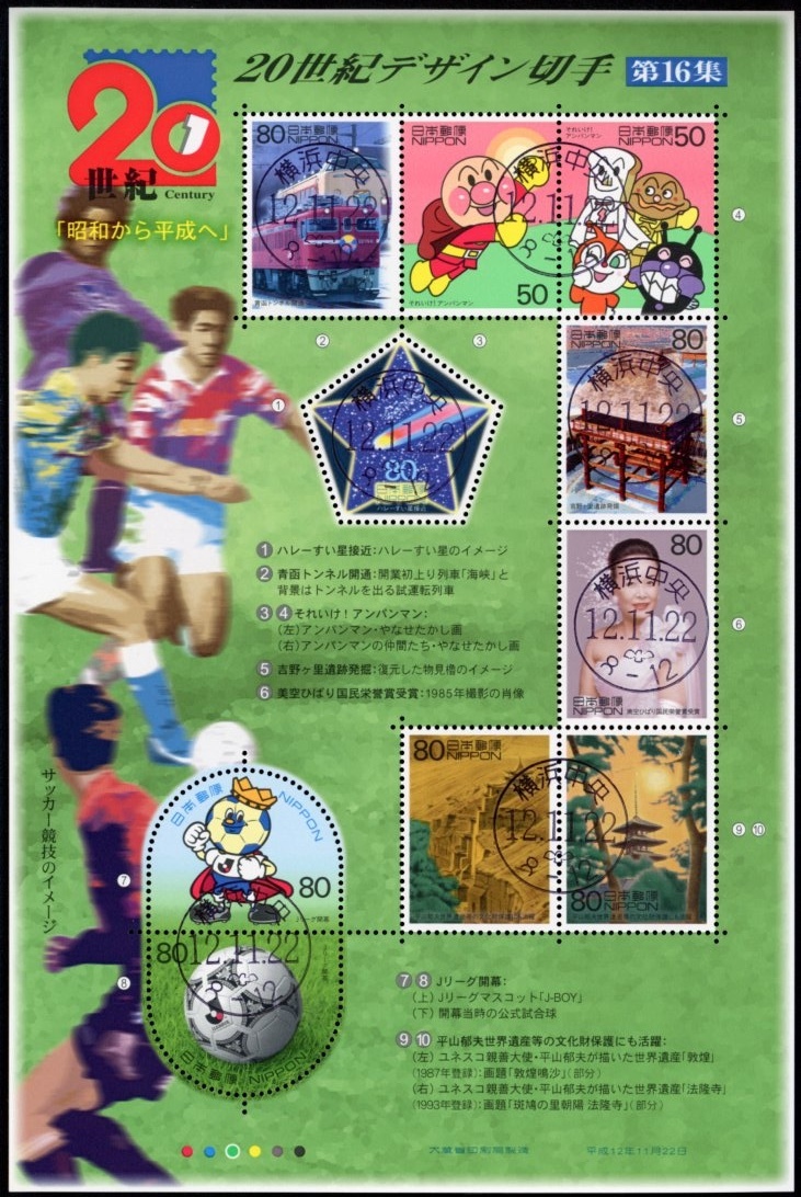 - B115 【初日印】20世紀デザイン切手第16集「昭和から平成へ」[横浜中央/12.11.22]