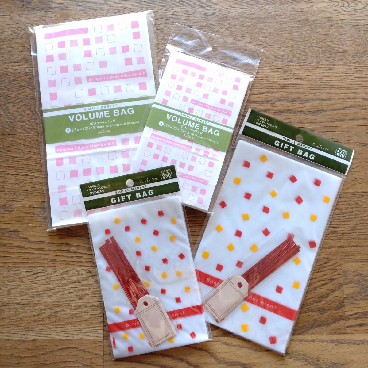 - 【未使用品】ボリュームバッグ ギフトバッグ S.M サイズ 4点セット ラッピング 紙袋 クリアーパック