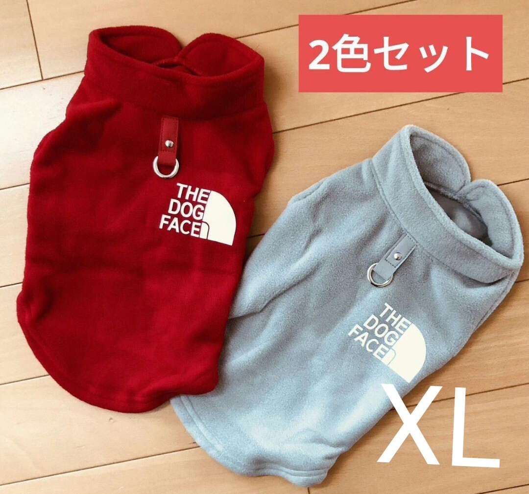 - 新品 犬服 2色セット XL ドッグフェイス あったかベスト リード用フック付き