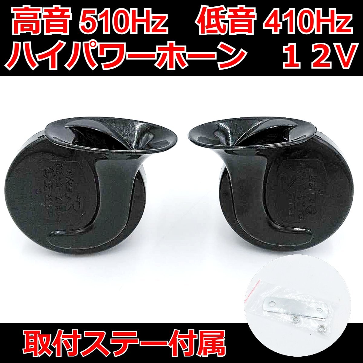 > 【12V】ハイパワーホーン 高音510Hz★低音410Hz TypeR ステー付 クラクション ブラック 黒 100db 周波数 新品 汎用 車検 警報機 カタツムリ