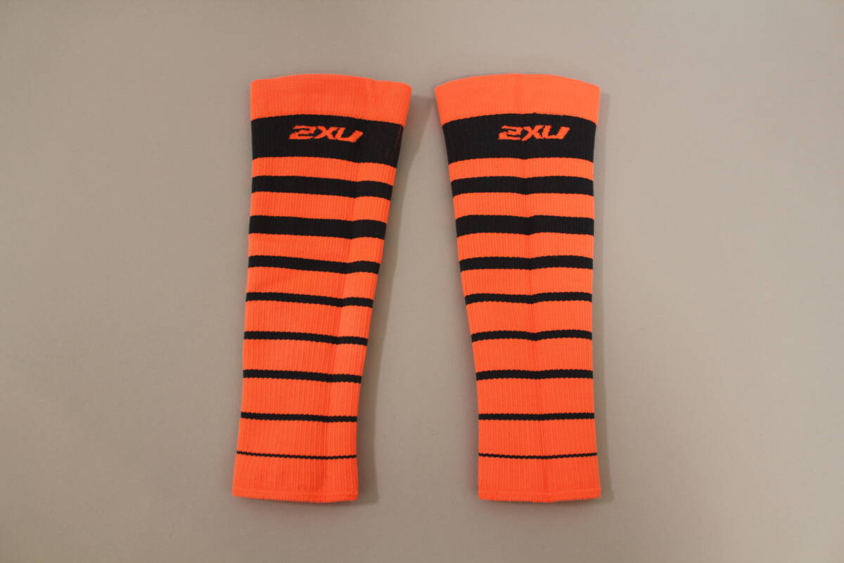 - 中古美品【2XU】コンプカーフスリーブ ストライプラン ua4205b オレンジ Sサイズ