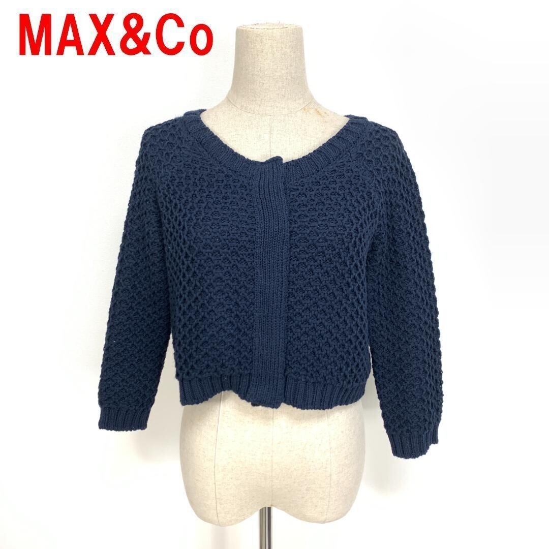 - A4969 マックスアンドコー 七分袖カーディガンMAX&Co コットン 綿 紺 ネイビー S