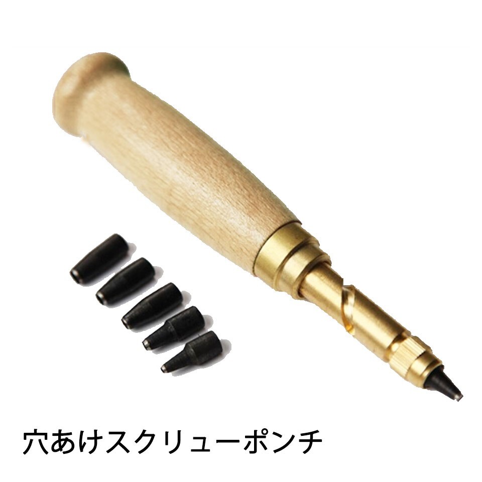 - レザークラフト スクリューポンチ道具 工具 穴あけポンチ 6サイズ ハンドメイド 革製品 1.5mm 2mm 3mm 4mm