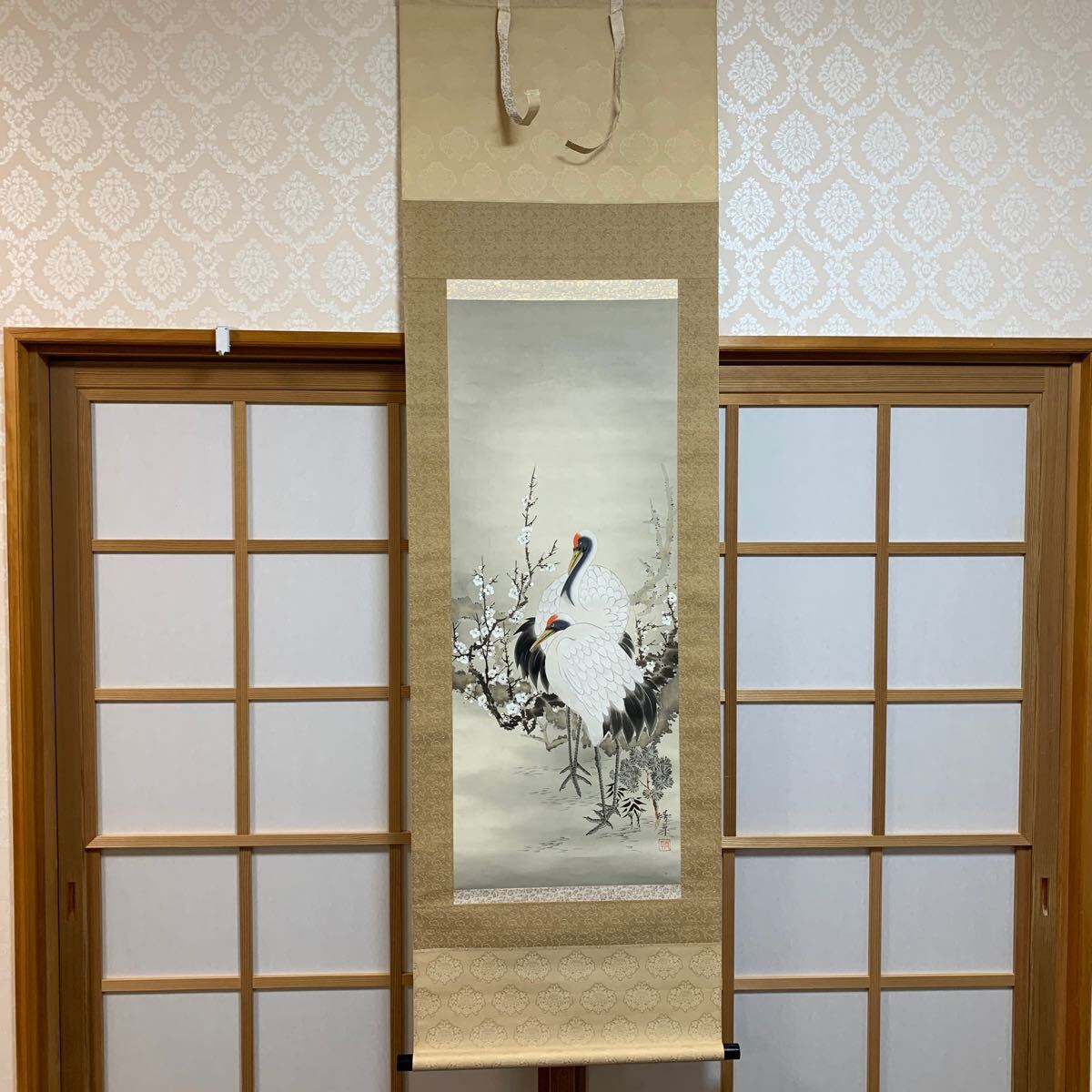 - 掛軸 模写 小梅鶴 木箱有り 紙箱有り No101
