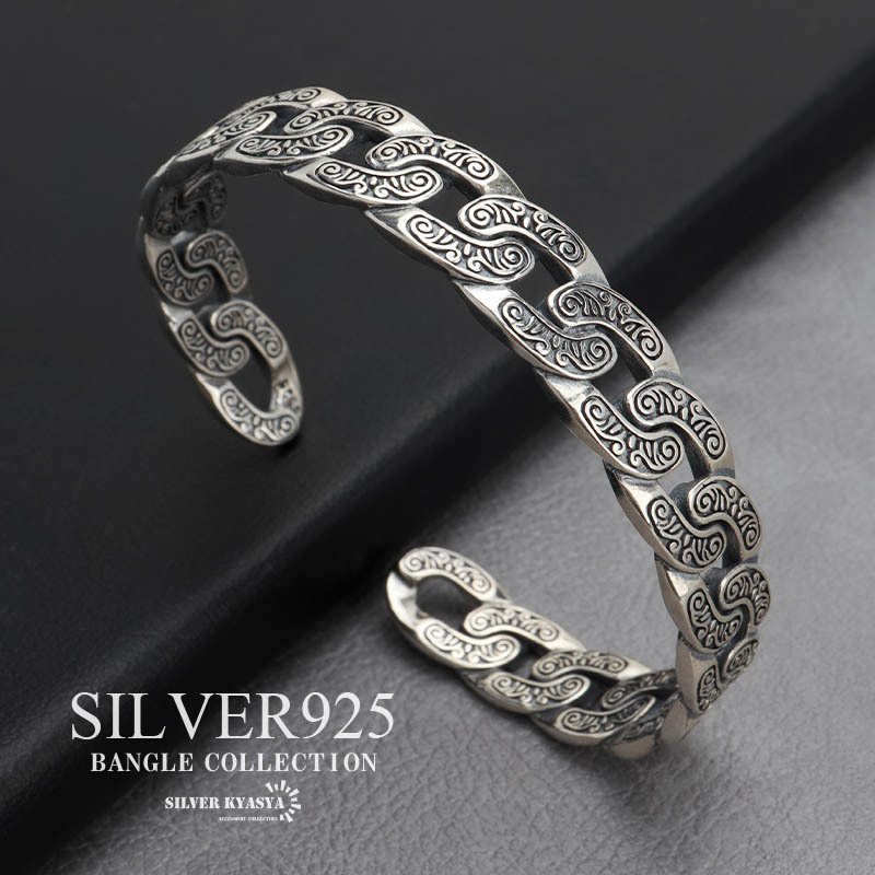 - シルバー925 アラベスクバングル 喜平バングル 唐草 チェーン 金属アレルギー対応