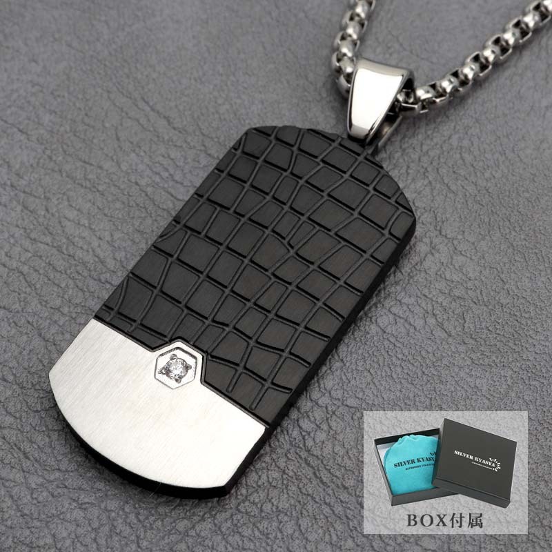 - シンプル 高級感 メンズネックレス ドッグタグネックレス プレートネックレス ブラック ストーン付き チェーン付き 専用BOX付属