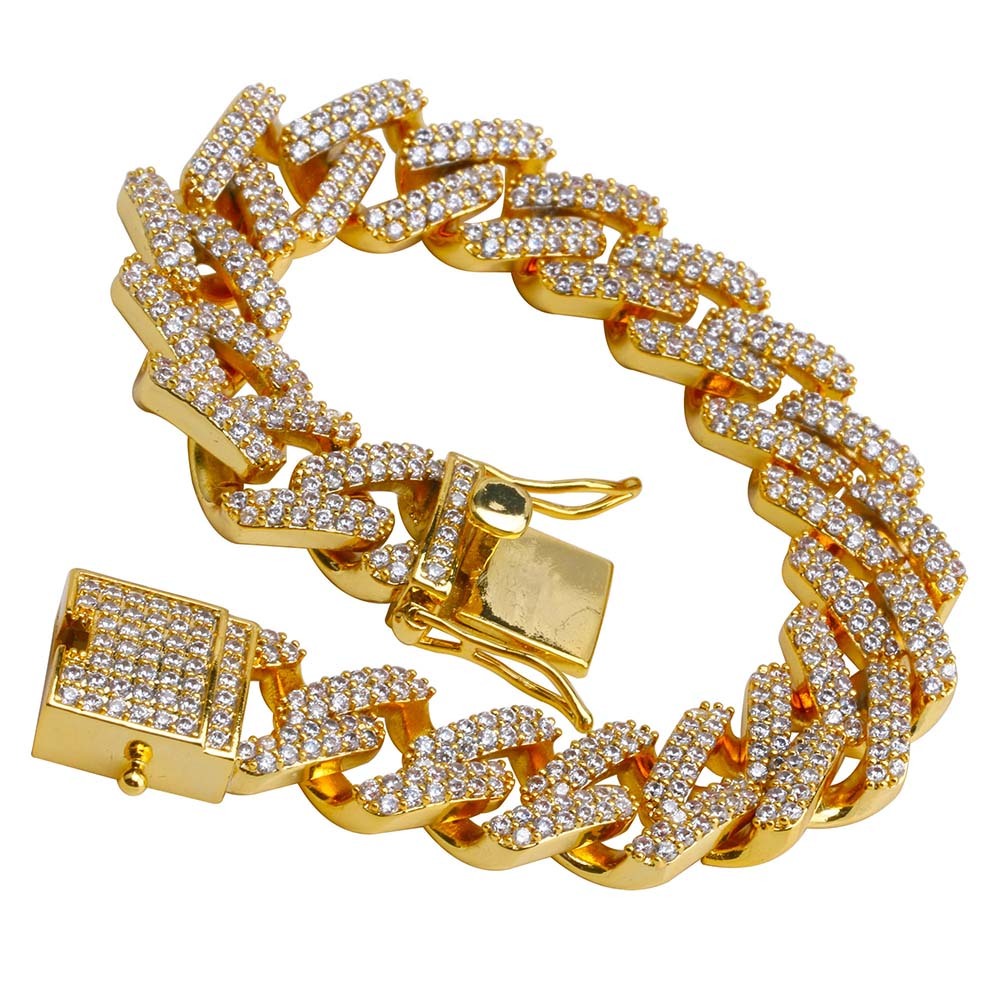 - B系 アクセサリー ブレスレット マイアミキューバン ゴールド ブレスレット パヴェ ストーン 金 18KGP