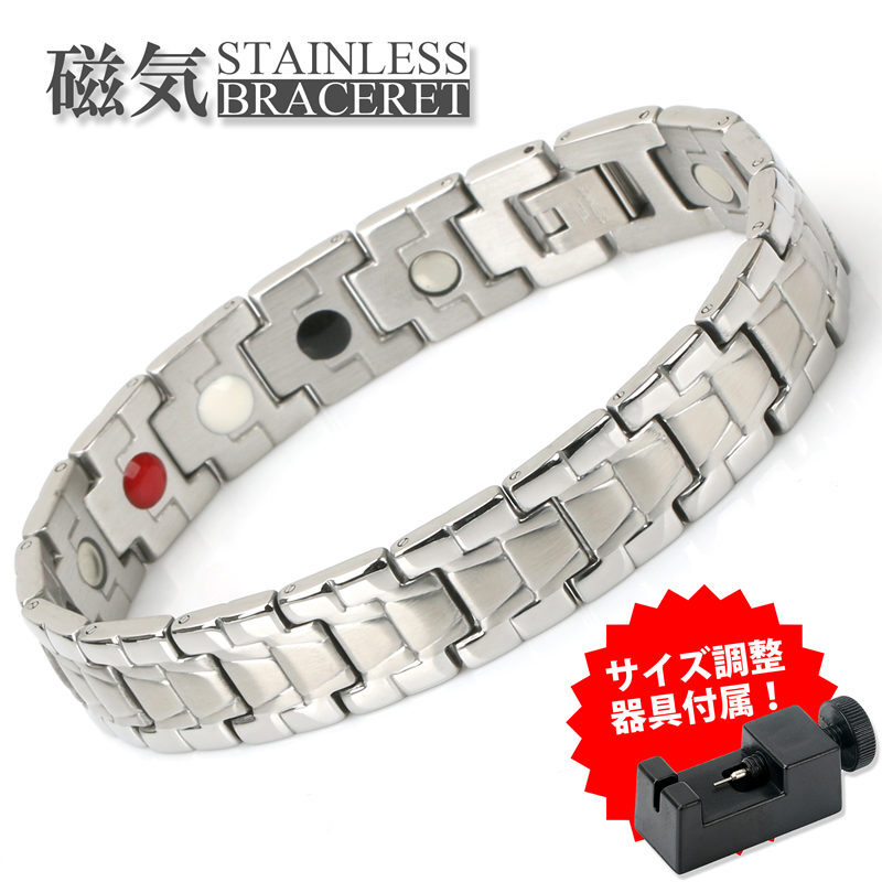 - 磁気ブレスレット メンズ ステンレス シルバー ブレスレット シンプル 金属アレルギー対応 磁力 磁石 316L 調整器具付属