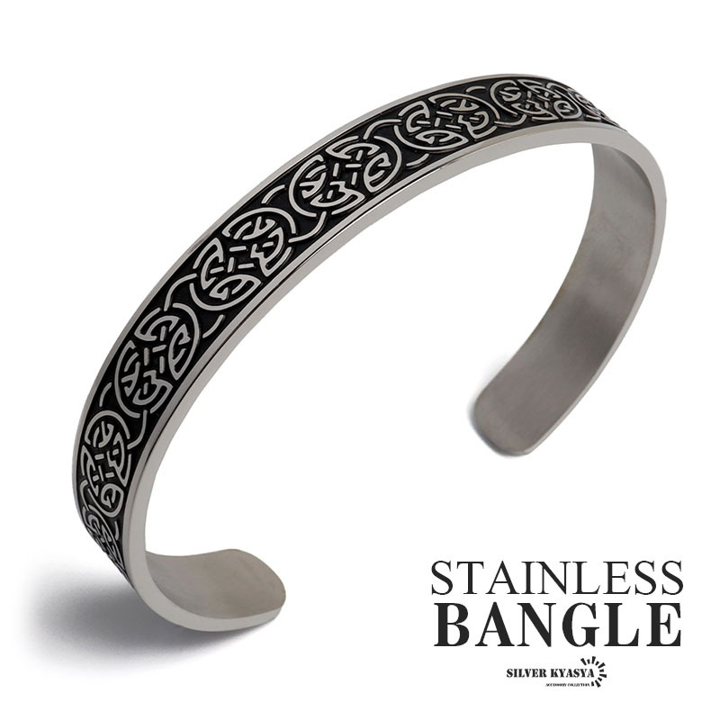 > ステンレス ケルト文様バングル ケルトの結び目バングル メタルバングル メンズ 腕輪 ブレスレット シルバー 金属アレルギー対応