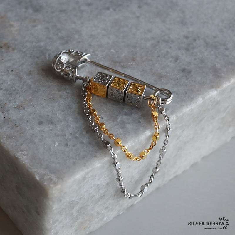 - シルバー925 安全ピンピアス 唐草ピアス ゴールド 18KGP シルバー 大ぶり アラベスク 片耳用1点 金属アレルギー対応