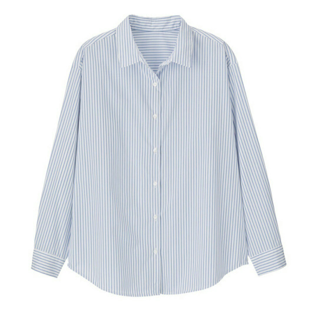 - XLサイズ 新品 未使用 2wayオーバーサイズシャツ カシュクール ストライプシャツ ホワイト ブルー 長袖シャツ GU 羽織りにも 送料無料