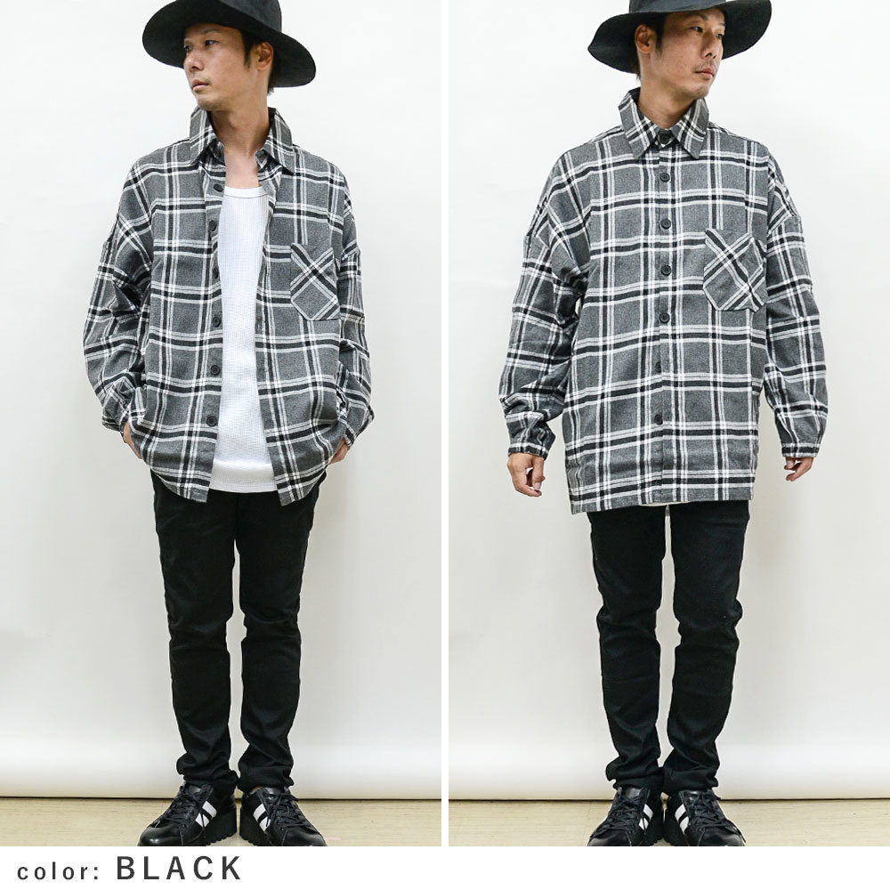 - ビッグシルエットチェック柄 ネルシャツジャケット rv7550 新品 グレーxブラックL