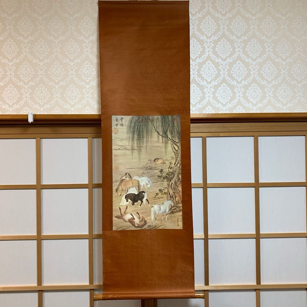 - 掛軸 模写 風景画馬図 木箱無し 紙箱有り No119