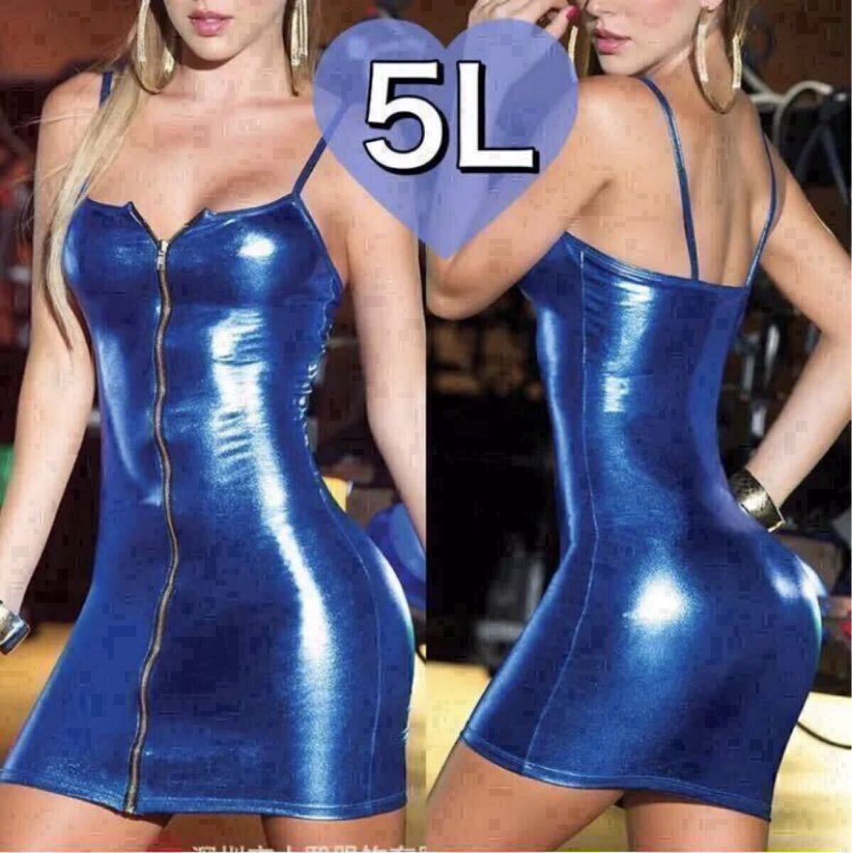 > ミニ ワンピース Tバック ショーツ ベビードール ボディスーツ ブルー 青 セクシー 5L ボディコン キャットスーツ レザー調 コスプレ XXXXL