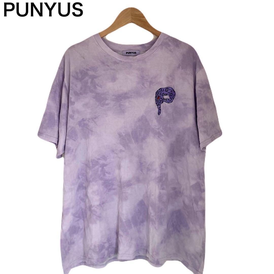 > プニュズ Tシャツ タイダイ柄 レディース パープル 刺繍 アニマル 半袖 ロゴ