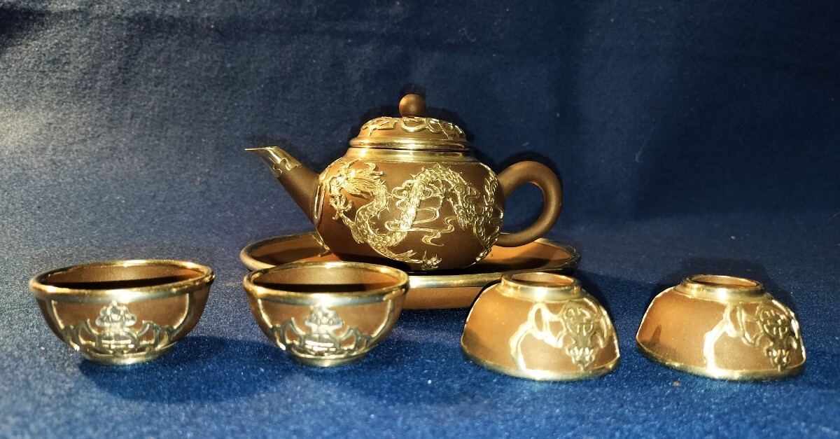 - 中国 銀ドラゴン 龍 急須 杯 吉紋斎 紫砂茶具錫 茶壷 茶道具 茶器 チャイナ 中華 Silver Dragon