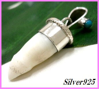 - シルバー925銀のターコイズ付クロコダイル牙ペンダント/1点のみ