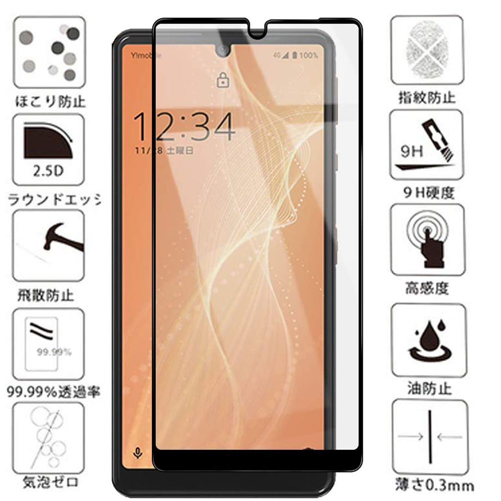 - 黒★送料無料 AQUOS sense4 basic 強化ガラスフィルム A003SH アクオス センスフォー ベーシック 保護 カバー フィルム シート シール