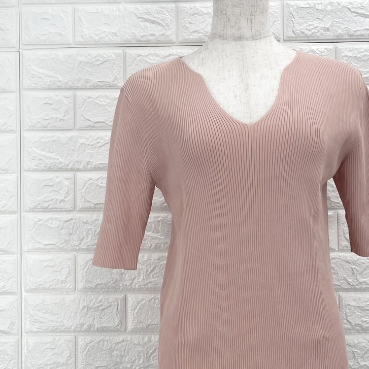> 【A3227】ROPE' PICNIC ロぺピクニック ニット カットソー レディース ピンク 五分袖 Vネック リブ編み エレガント Sサイズ