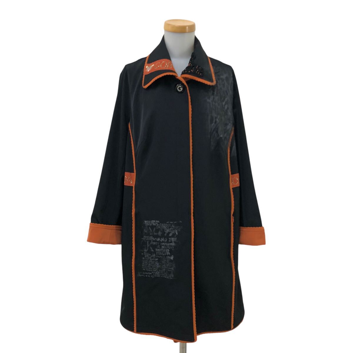> m593-18 大きいサイズ 伊太利屋 イタリヤ GK ステンカラー コート レオパード ヒョウ ロゴ プリント 上着 アウター ブラック 13 日本製