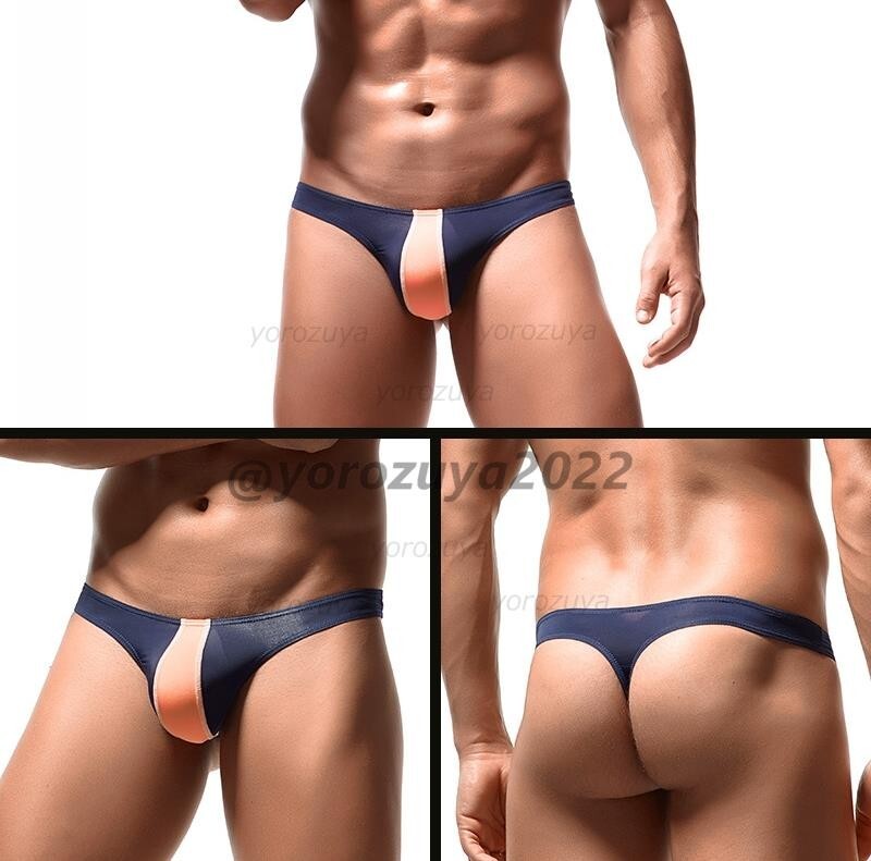 > 165-9-6 セクシー ラインパンツ ナイロン シームレス Tバック【ネイビー,M】男性 メンズ 下着 ブリーフ Gストリング アンダーウェア.1