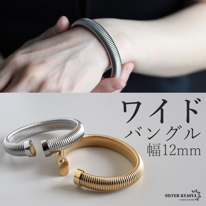 - (シルバー) ステンレス ワイドブレスレット 欧米で人気 腕輪 ワイドバングル 太め 金アレ