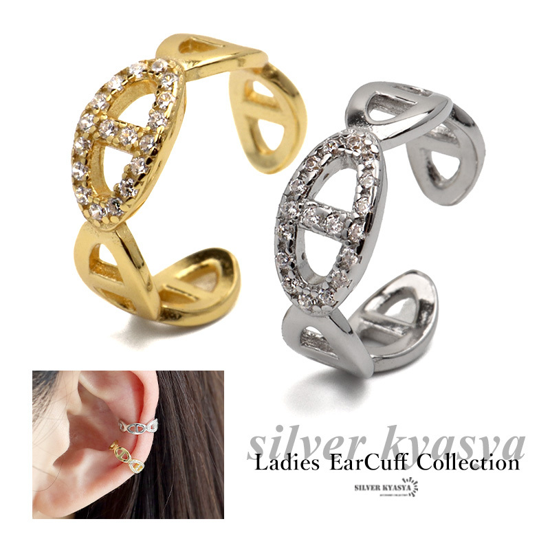 - (ゴールド) イヤーカフ シルバー925 18KGP CZ マリーナ アンカー チェーン ゴールド シルバー ノンホール 片耳用
