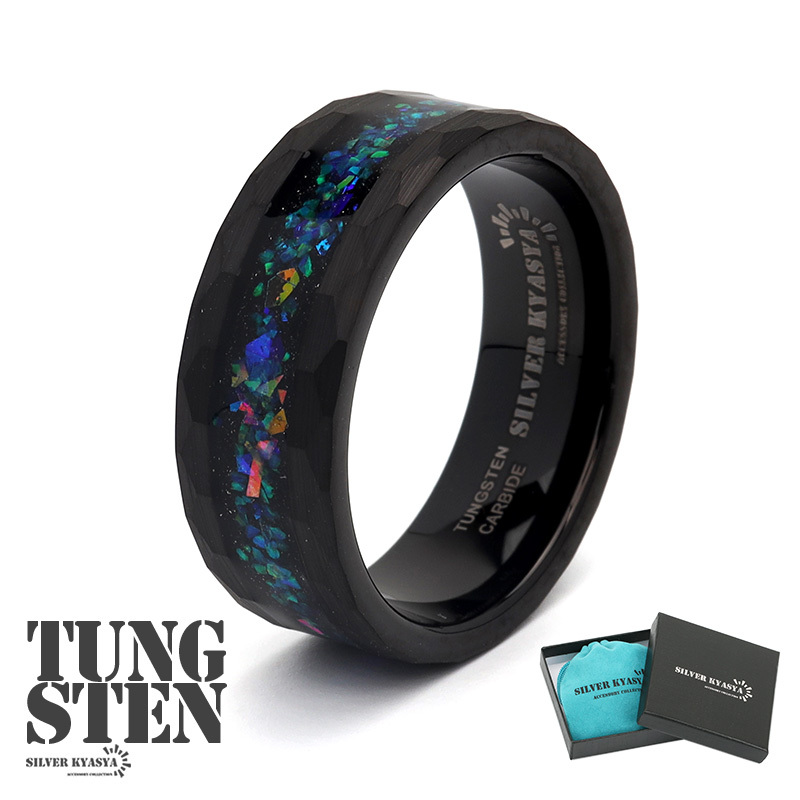 - (22号) タングステン ラインリング メンズ リング 指輪 ブラック ホログラム つけっぱなしOK 専用BOX
