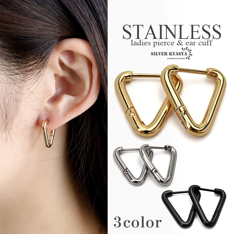 - (シルバー) 両耳 ステンレス素材 トライアングルピアス 三角ピアス シンプル 使いやすい 開閉式 ワンタッチピアス 金アレ
