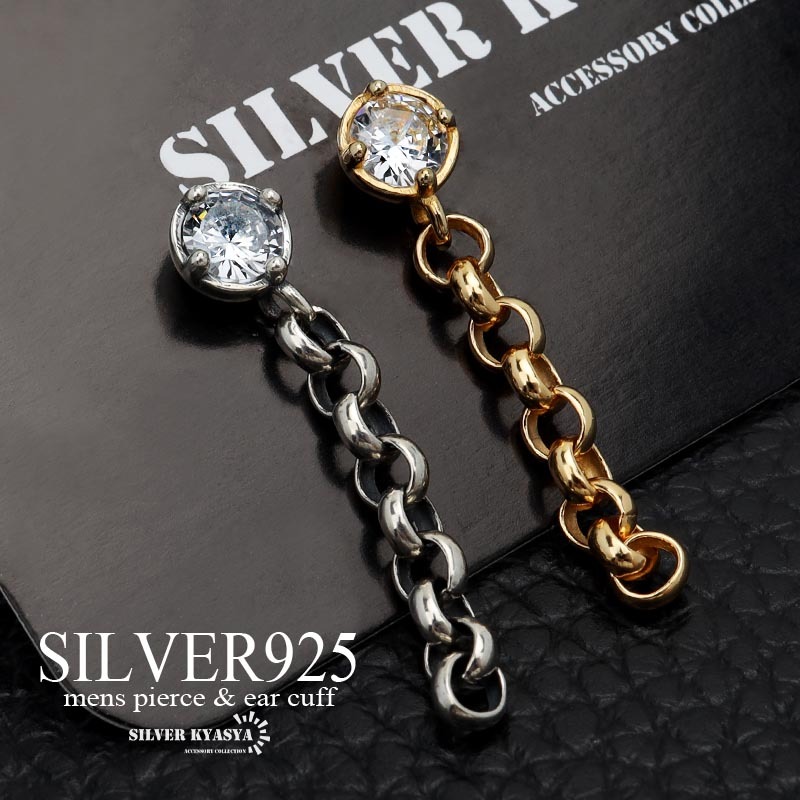 - (シルバー) シルバー925 チェーンピアス ロールチェーン ピアス ドロップピアス ゴールド 18K GP 片耳用 1点