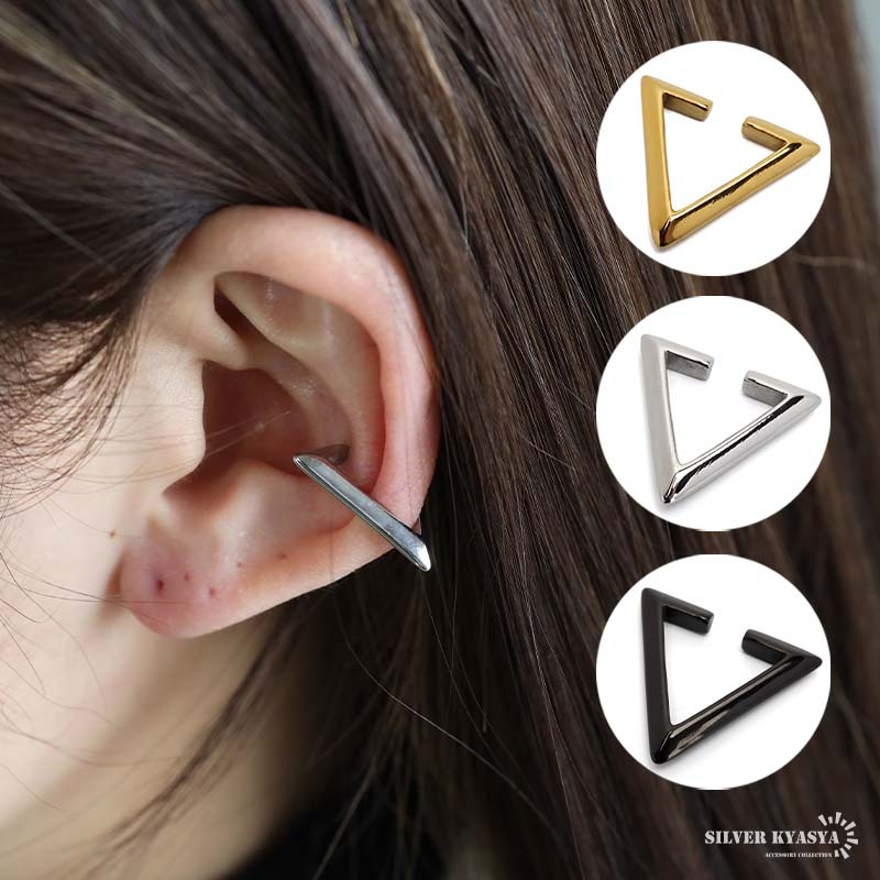 - (ゴールド) ステンレス トライアングルイヤーカフ 3色 三角イヤーカフ ノンホール 穴不要 片耳1点 女性 金アレ対応