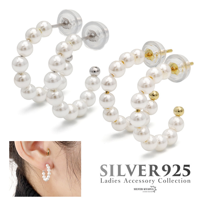 > (ゴールド) ピアス ハーフフープピアス パール シルバー925 18KGP 真珠 小粒 ゴールド シルバー 両耳用 2点セット