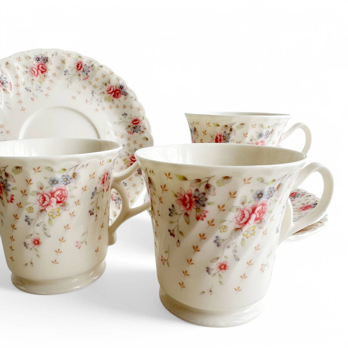> N7-280 SAHASHI カップ&ソーサー 3客 花柄 食器 茶器 昭和レトロ