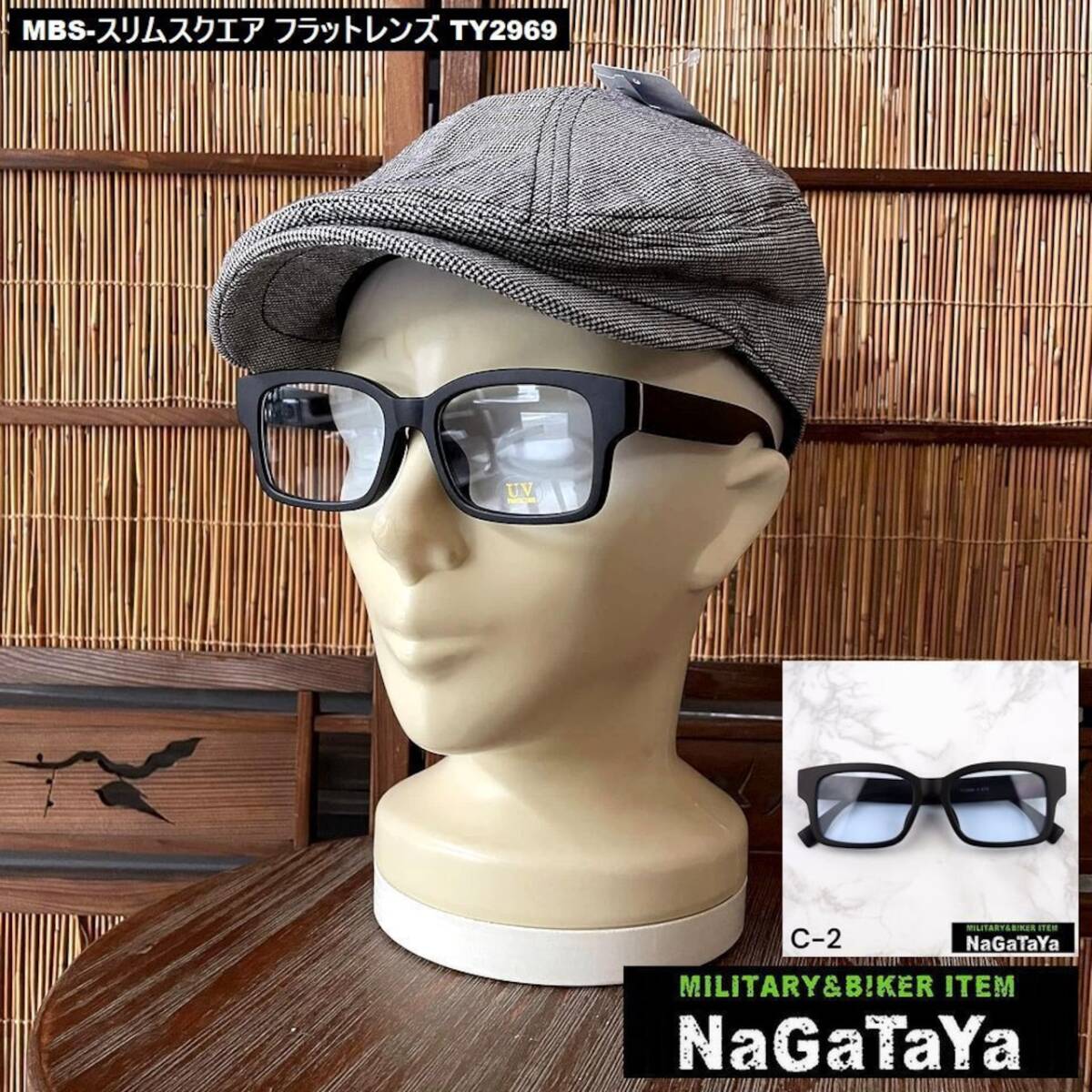 - MBN スリムスクエア 長方形 フラットレンズ UVカットレンズ サングラス マット黒×ライトブルー 男女兼用 TY2969 巾着ソフトメガネケース付