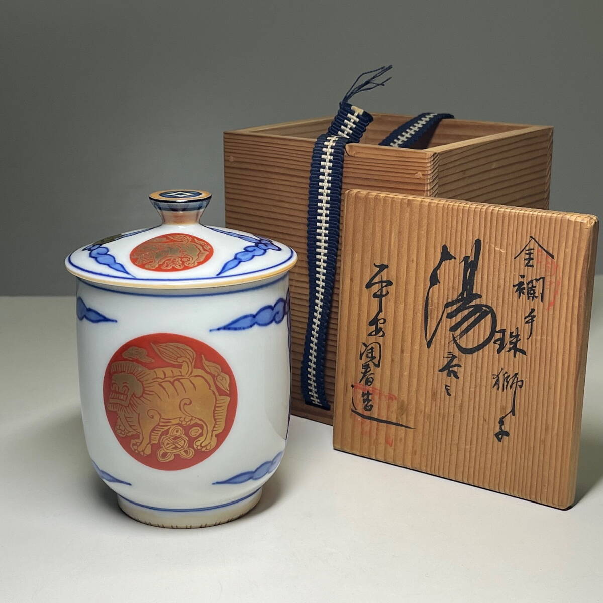 - ★平安 陶春 造★金襴手 珠獅子 蓋付 湯呑 清水焼★湯のみ/湯呑み/茶碗/京都