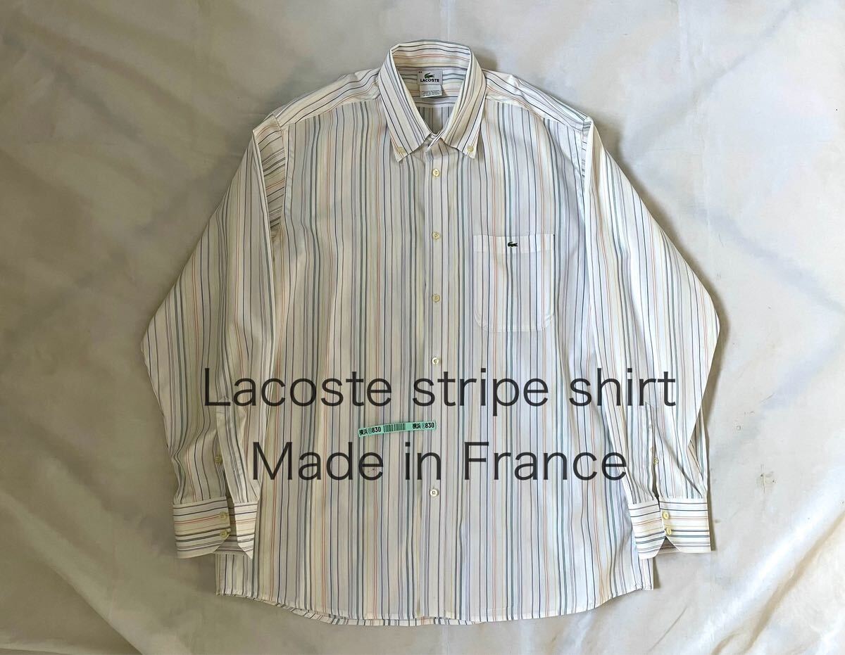 - 仏製90sラコステLacosteフレラコ 長袖 シャツ ストライプ 白XLメンズ44Homme garconsギャルソンCharvetシャルべ Lフランス製 ボタンダウン
