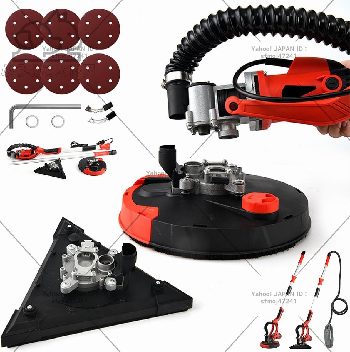 - 電気ドライウォールサンダー 110v 950W 電動乾式壁 6速調整 1000~1800r/min 研磨機 伸縮可能 ダブル研磨ディスク