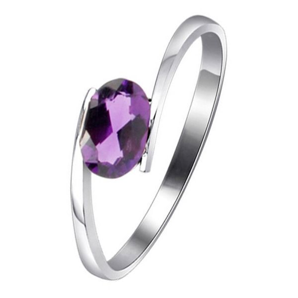 > 【証明書付き】100% 天然アメジストリング、4×6mm、 925シルバージュエリー ◆最初の入札者様は開始価格で購入できます◆_Co