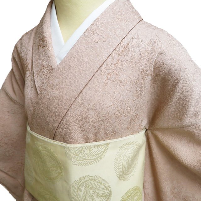 > 色無地 着物 中古 正絹 袷 フォーマル 紋付き 地模様 花唐草模様 洗柿色 身丈166.5cm 裄67cm L トール きもの北條 A1145-4