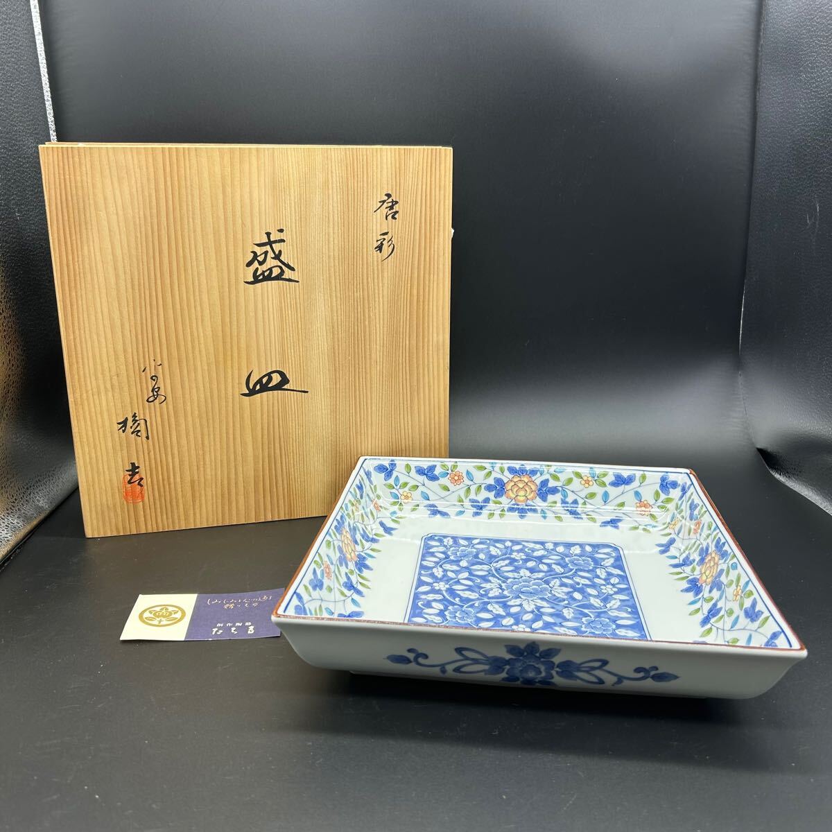 - たち吉 唐彩 盛皿 大皿 平安橘吉 唐草模様 正方形 角皿 色絵 花文 飾り皿 和食器 ト2