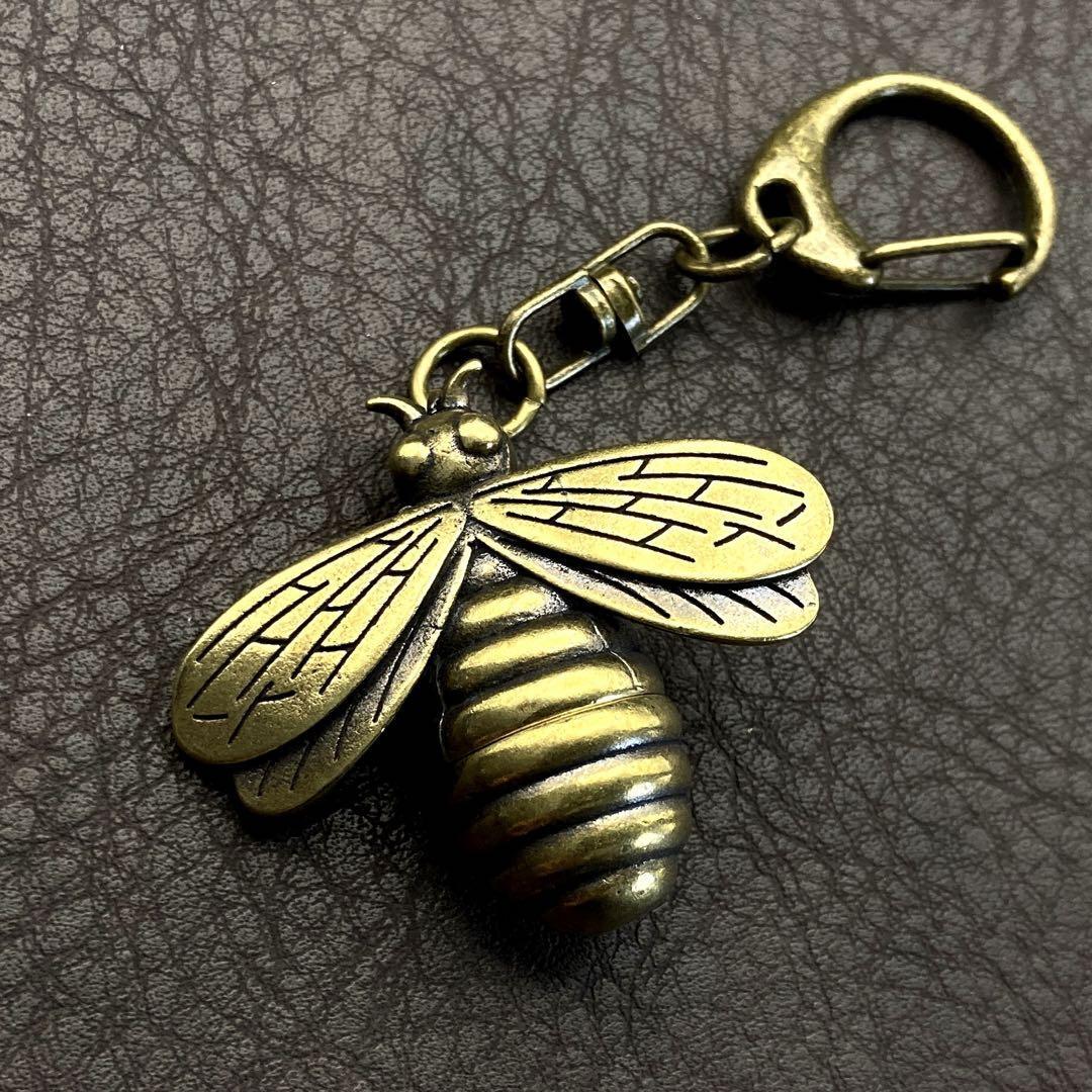 - 真鍮 キーホルダー キーリング ヴィンテージ ビンテージ 金色 アンティーク レトロ 真鍮製 ペンダントトップ 置物 チャーム 蜂 ハチ 150