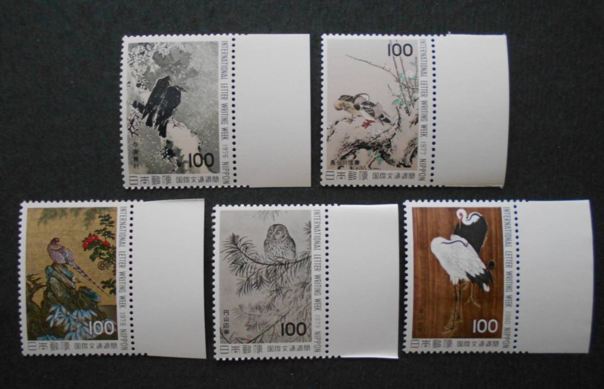 - 文通週間 1976~1980 未使用100円切手5種類