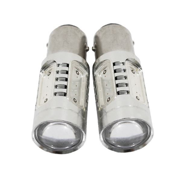 - Б スクエアチップ プロジェクターレンズ LED バルブ S25/BAY15d ダブル 段違い 180度 COB 7.5W 面発光 5連 バックランプ 2個 アンバー/橙