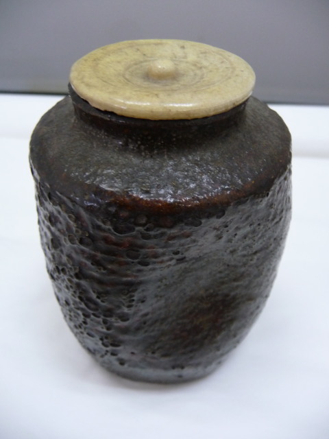 - 希少 未使用 岡山 後楽園 御庭焼” 三代 坡石 茶入れ 陶印