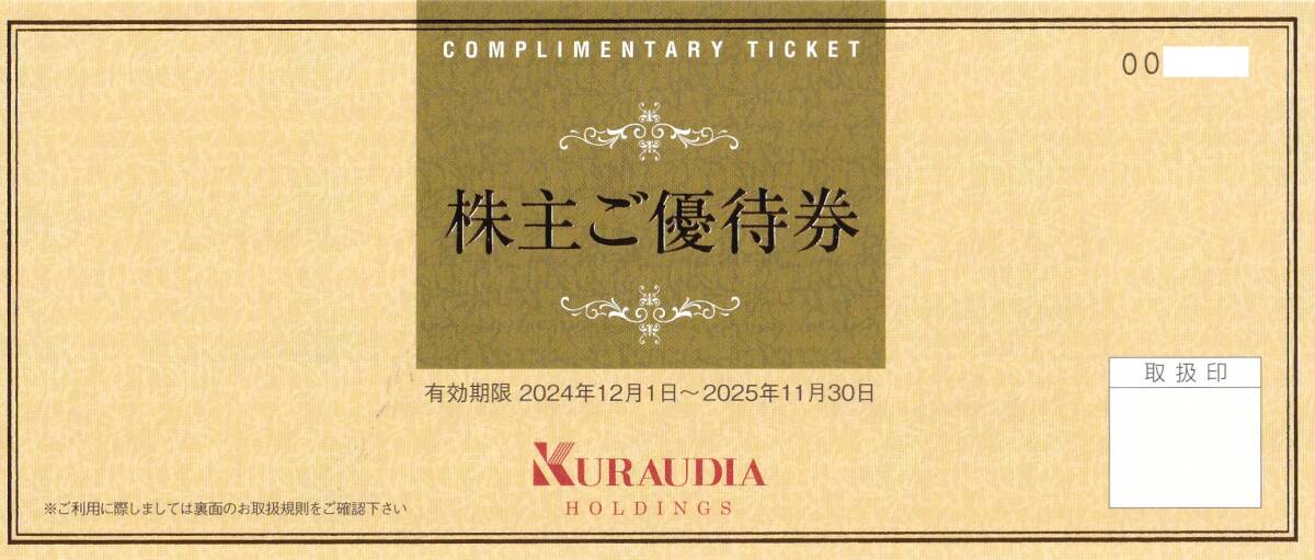- クラウディアホールディングス株主ご優待券(全国の結婚式場、ホテル・レストラン、貸衣装の割引)有効期限:2025年11月30日