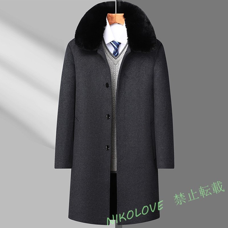 > ☆新品ビジネスコート 秋冬 厚手 ウールコート 裏起毛 メンズコート WOOL ロングコート 紳士スーツ ファーコート グレー L LK272
