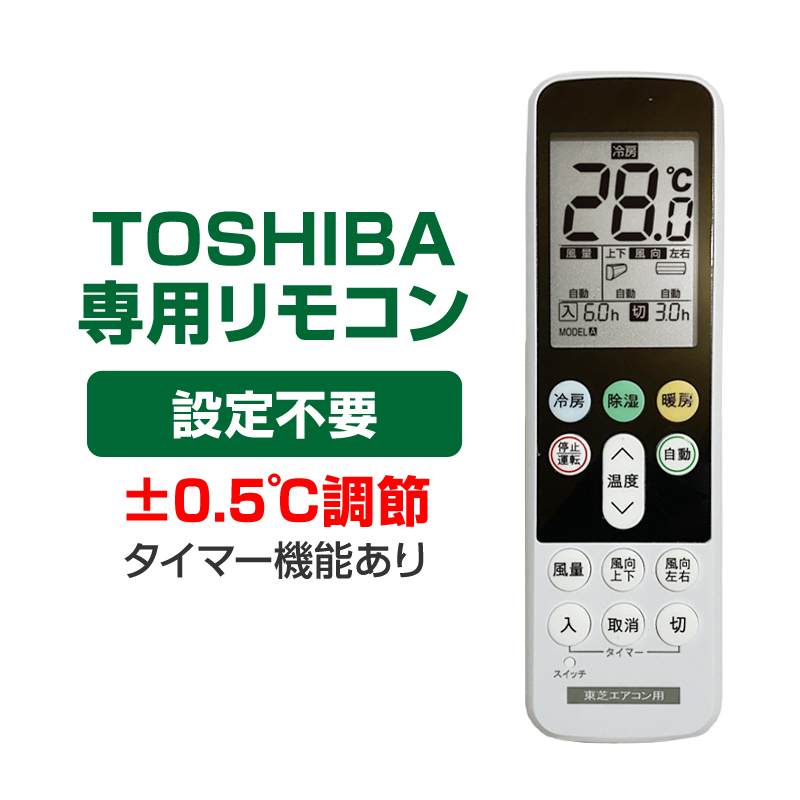> 東芝 エアコン用 リモコン 日本語表示 TOSHIBA 設定不要 互換 0.5度調節可 大画面液晶パネル バックライト 自動運転タイマー 日本語説明書